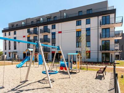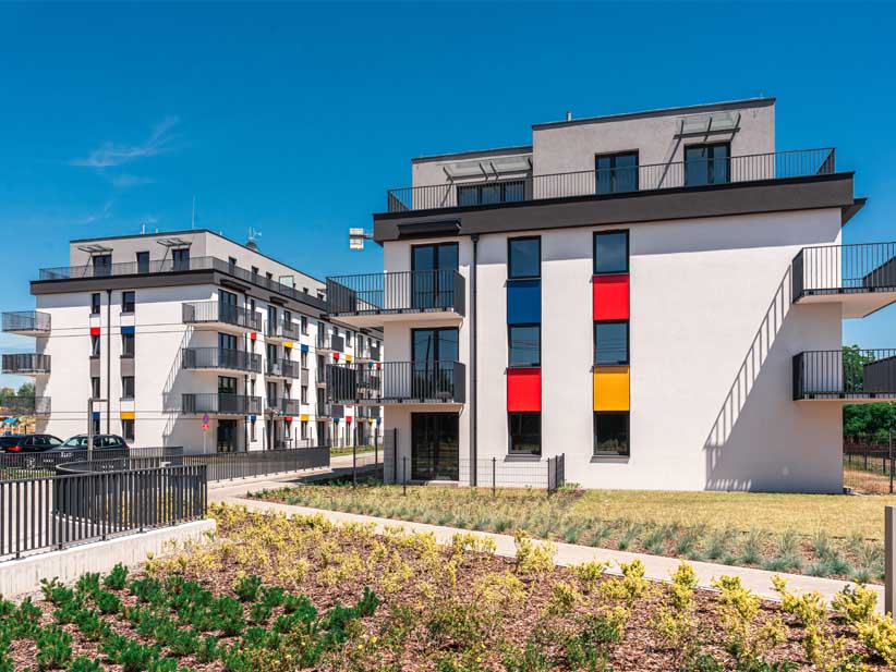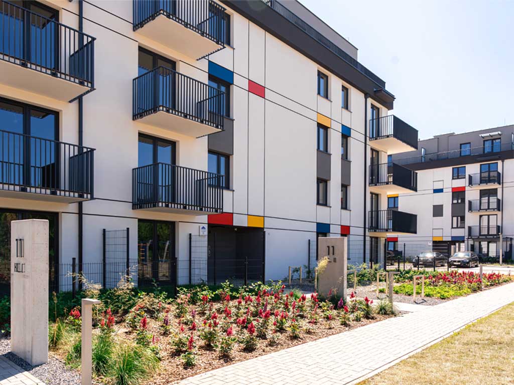 Szeroki wachlarz mieszkań o powierzchni od 28 m2 do 95 m2 sprawi, iż każdy znajdzie coś dla siebie. W dbałości o komfort klientów do mieszkań położonych na parterach oraz na ostatnich kondygnacjach zaprojektowano tarasy, a na pozostałych kondygnacjach balkony. W podziemiu znajdować się będą zamykane indywidualne boksy garażowe.